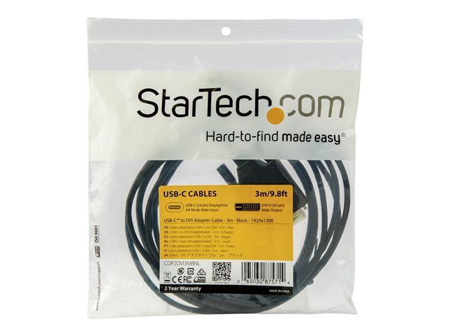 StarTech.com 10ft (3m) USB C to DVI Cable, 1080p (Single Link) USB Type-C (DP Alt Mode HBR2) to DVI-Digital Video Adapter Cable, Thunderbolt 3 Compatible, Laptop to DVI Monitor/Display