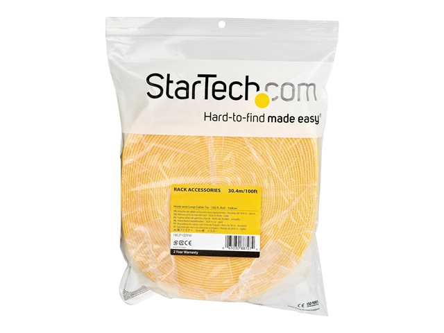 StarTech.com 100ft Hook and Loop Roll, Cut-to-Size Reusable Cable Ties, Bulk Industrial Wire Fastener Tape /Adjustable Fabric Wraps Yellowith Resuable Self Gripping Cable Management Straps