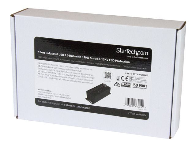 Industriell USB-A-hubb i metall med ESD-skydd och 350 W överspänningsskydd - Monterbar på DIN-skena, vägg eller skrivbord - TAA-kompatibel USB-expansionshubb - Hubb - 7 x SuperSpeed USB 3.0 - DIN-skenmonterbar, väggmonterbar - likström - för P/N: ITB20D3250, USB312SAT3CB, USB315CB2M, USBLT1MWS, USBLT2MBR, USBLTM1MBK, USBLTM1MWH