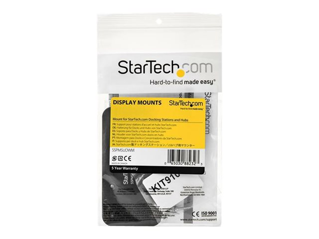 Skapa ett obelamrat arbetsområde genom att montera din dockningsstation eller hubb och frigör utrymme på skrivbordet. Den här dockningsstations-monteringen gör det enkelt att montera en kompatibel StarTech.com-dockning eller hubb på väggen, under ditt skrivbord eller bänk eller till en annan solid yta.  Robust konstruktion  Den robusta och slitstarka docknings- och hubbfästen är tillverkad i Kanada konstruerat av kaliber 10 stål (3,3 mm tjock).  Mångsidig användning  Väggmontera din bärbara dockningsstation eller hubb för att frigöra utrymme på affärskontor, kommersiella utrymmen, lager och industriella miljöer. Du kan också montera den under skrivbordet för att stoppa undan det och samtidigt tillåta enkel åtkomst. Det är också idealiskt för utrymmesbegränsade områden, inklusive heta skrivbord och delade arbetsstationer, mobila och väggmonterade arbetsstationer och hemmakontor.  Spara skrivbordsutrymme  Detta innovativa fäste är designat för att exklusivt fungera med kompatibla StarTech.com-produkter inklusive:  DK30C2DPEP" text="Universell dockningsstation för datorer med två 4K-bildskärmar - USB-C / USB 3.0 - 100W PD (DK30C2DPEP)  DK30C2DPEPUE" text="Universell dockningsstation för datorer med två 4K-bildskärmar - USB-C / USB 3.0 - 100W PD (DK30C2DPEPUE)  DK30C2DPPD" text="Universell dockningsstation för datorer med två 4K-bildskärmar - USB-C / USB 3.0 - 60W PD (DK30C2DPPD)  DK30C2DPPDUE" text="Universell dockningsstation för datorer med två 4K-bildskärmar- USB-C / USB 3.0 - 60W PD (DK30C2DPPDUE)  TB3CDK2DP" text="Thunderbolt 3-dockningsstation med USB-C kompatibilitet för bärbara datorer (TB3CDK2DP)  TB3CDK2DPUE" text="Thunderbolt 3-dockningsstation med USB-C kompatibilitet för bärbara datorer (TB3CDK2DPUE)  HB31C3A1CS" text="USB-C 10Gbps hubb med 4 portar- USB 3.1 till 3x USB-A + 1x USB-C (HB31C3A1CS)  HB31C4AS" text="USB-C 10Gbps hubb med 4 portar - USB 3.1 till 4x USB-A - självförsörjande (HB31C4AS)  HB31C2A1CGS" text="USB-C hubb med 3 portar och GbE - USB 3.1 (10Gbps) (HB31C2A1CGS)  Snabbt och lätt att installera   Dockningsstationens monteringssats, komplett med monteringsplatta och skruvar, gör det enkelt att montera din kompatibla docka eller hubb till en plan yta.  SSPMSUDWM är stödd av en StarTech.com 5-årsgaranti och gratis livstidsgaranti på teknisk support.